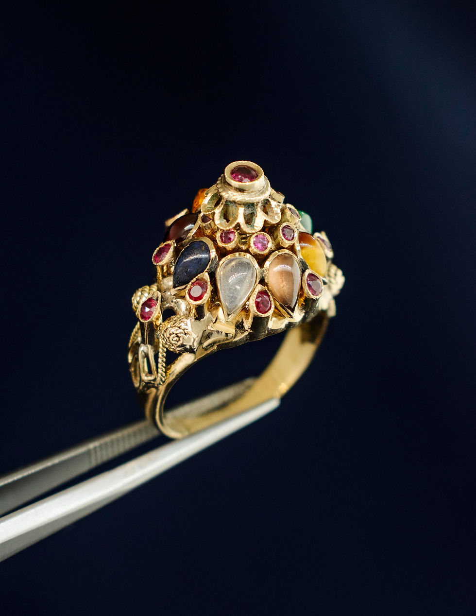 Stones: Diamonds at 0.23 carat total weight. Sapphire at 0.47 carat total weight.